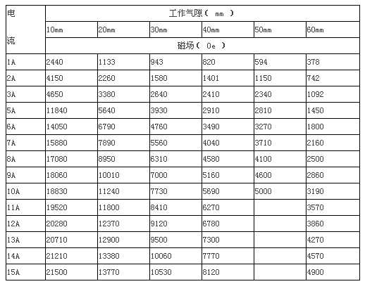 * 剩 磁:≤10mT, 工作氣隙10mm時